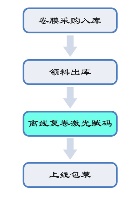 HANS600D賦碼系統屬于離線生產設備,對于原有生產工藝影響不大,如下所示,亮色部分為在現有生產工序上新增流程: