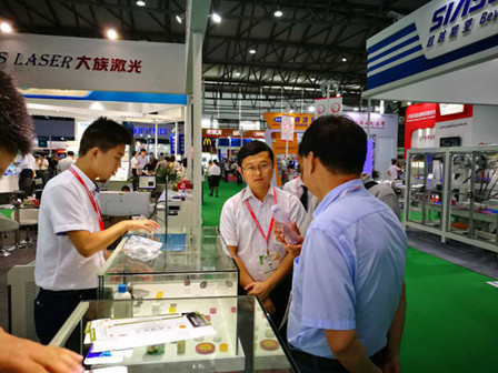 展會正在熱火朝天地進行著,大族標識團隊的工作人員為前來參觀、咨詢的客戶展示激光打標的實時演示,細心介紹著設備原理、打標效果,為觀眾解答疑惑。