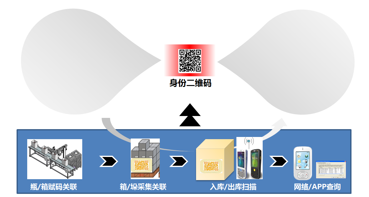 在產(chǎn)品的各級(jí)包裝附著物流碼條碼信息,在生產(chǎn)的過(guò)程中,為物流碼賦予產(chǎn)品的生產(chǎn)數(shù)據(jù)(如生產(chǎn)日期、產(chǎn)品批號(hào)、有效期、使用的原料次等),并建立產(chǎn)品包裝各級(jí)包裝之間的關(guān)聯(lián)關(guān)系,生產(chǎn)結(jié)束后將關(guān)聯(lián)關(guān)系上傳到企業(yè)數(shù)據(jù)控制中心,實(shí)現(xiàn)一品一碼,也是系統(tǒng)實(shí)現(xiàn)防偽功能的數(shù)據(jù)基礎(chǔ)。
